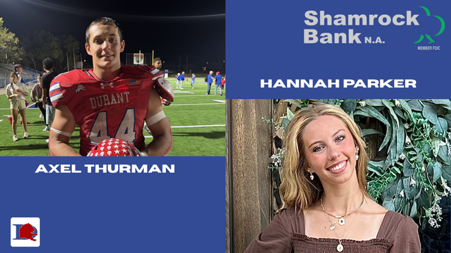 Axel Thurman and Hannah Parker of Durant High School have been selected as the Shamrock Bank Impact Athlete and Performing Arts Students of the month for October 2025.