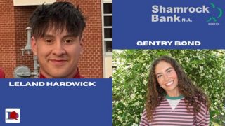 Leland Hardwick and Gentry Bond of Durant High School are the December 2025 Shamrock Bank…